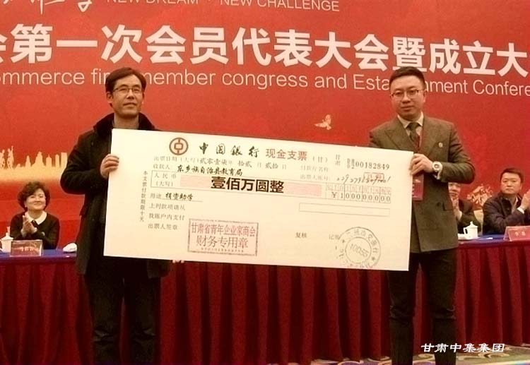 同時,甘肅省青年企業(yè)家商會副會長、甘肅中集實(shí)業(yè)集團(tuán)董事長周啟濤代表甘肅省青年企業(yè)家商會現(xiàn)場向東鄉(xiāng)族自治縣捐贈100萬元,用于建造東鄉(xiāng)縣石家溝村幼兒園。